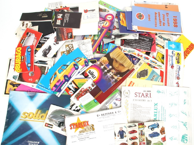 états de 'a' à 'c' - on y retrouve notamment les marques : STARLUX, SOLIDO, SIKU, RAMI, BBURAGO, ELIGOR, MAJORETTE, POLITOYS & MEBETOYS - avec possibilité de déchirures, crayonnages & manques