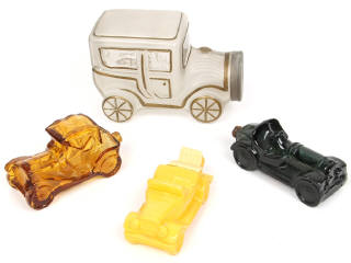 fabrication en verre & céramique - différentes échelles - comprend : une boite à bonbons & 3 bouteilles d'après rasage - manque 2 bouchons - on y retrouve principalement la marque AVON