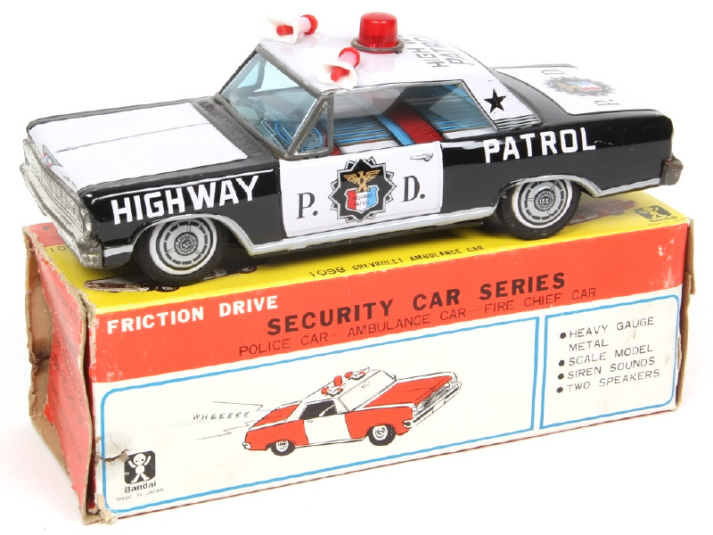 BANDAÏ (JAPON) 1097 CHEVROLET IMPALA 'HIGHWAY PATROL' en tôle lithographiée noir & blanc