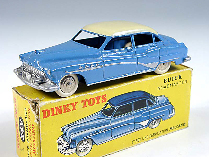DINKY TOYS (FRANCE) 24V BUICK ROADMASTER (version avec intérieur de toit quadrillé & jantes chromées) bleu, toit crème