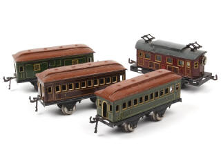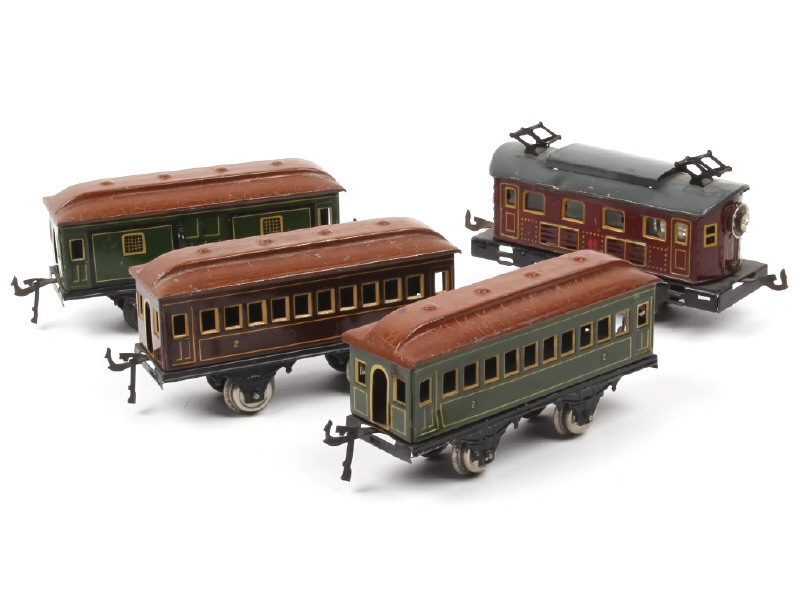 BING (Ecartement O) Ensemble de 4 matériels ferroviaires marron, vert & noir
