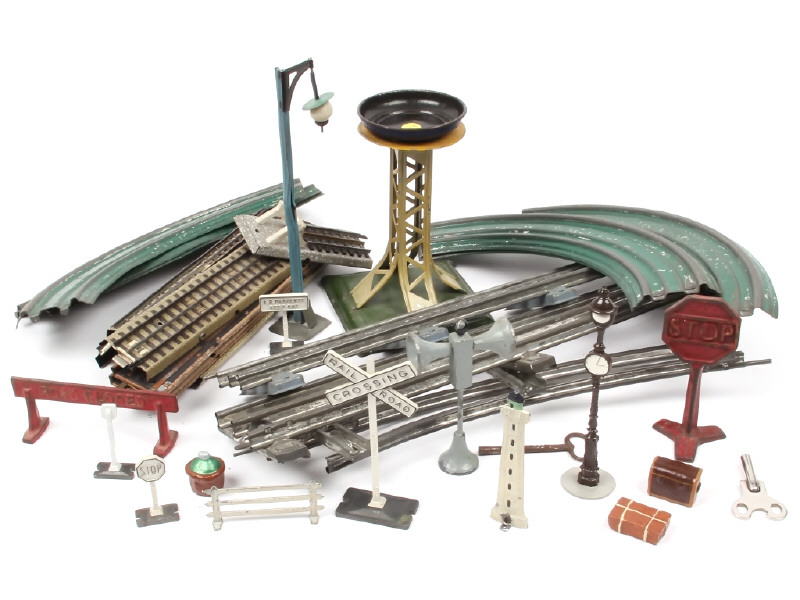 comprend notamment : rails, signaux & lampadaire - on y retrouve notamment les marques : JEP, MÄRKLIN & C.R - avec manques & parties cassées