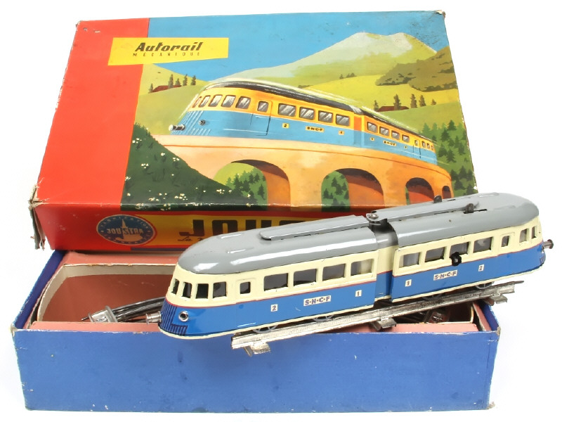 JOUSTRA (FRANCE) 809 Coffret d'autorail mécanique 'TORNADO bleu, crème & gris