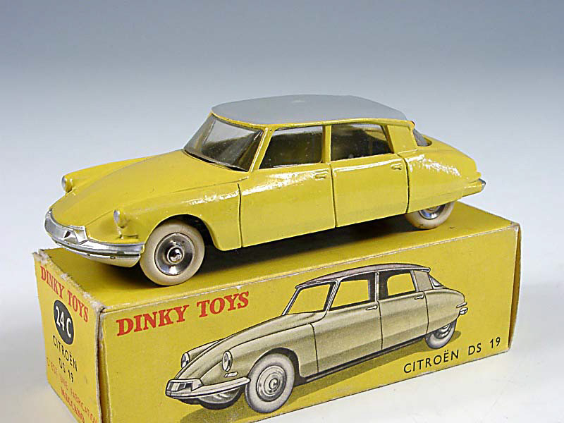 DINKY TOYS (FRANCE) 522 CITROËN DS 19 (version avec vitres & jantes concaves) jaune citron, toit gris clair