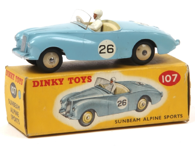 DINKY TOYS (GB) 107 SUNBEAM ALPINE de course bleu ciel, intérieur crème