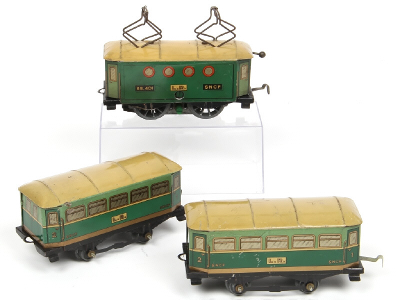 comprend : motrice électrique (non testé) & 2 voitures - quelques frottements & traces d'oxydation notamment sur les pantographes