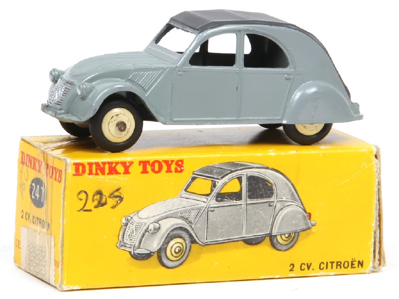DINKY TOYS (FRANCE) 24T CITROËN 2CV (version avec 3 feux arrière) gris clair, capote gris foncé mat, jantes crème