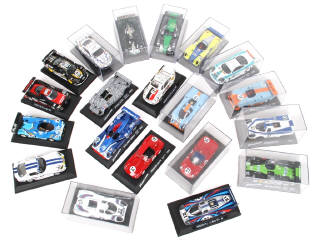 miniatures reproduisant notamment les modèles : PORSCHE, NISSAN, LOLA, FERRARI & GULF - principalement collections presse - possibilité de petits manques