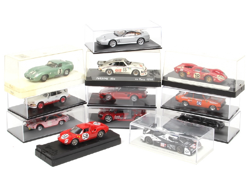 un modèle en état 'R' - miniatures reproduisant notamment les modèles : PORSCHE, ALPINE, LOLA & FORD - on y retrouve notamment les marques : SCHUCO, SPARK & SOLIDO - boites non d'origine (dont une fissurée) - possibilité de petits manques
