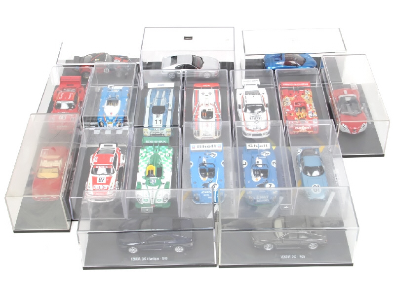 principalement de compétiton - miniatures reproduisant notamment les modèles : VENTURI, PORSCHE, FORD & MATRA - on y retrouve notamment les marques : NOREV, ALTAYA & MINI RACING - certaines en kit montés - quelques boites non conformes - possibilité de petits manques