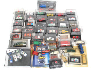 petites échelles - miniatures reproduisant notamment les modèles : VOLVO, BMW, JAGUAR, MERCEDES & CITROEN - on y retrouve notamment les marques : SCHUCO, WIKING, BREKINA & MATCHBOX - quelques exemplaires sans boite en état de 'C' à 'E' avec quelques manques