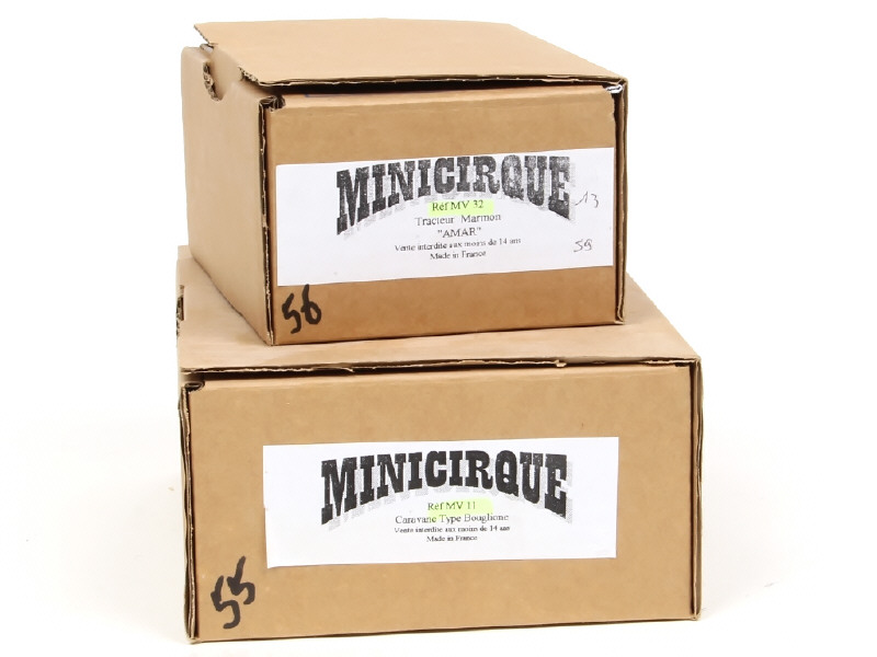 comprend : tracteur Marmon 'AMAR' (référence MV32) & caravane type 'BOUGLIONE (référence MV11) - annotations sur les boites