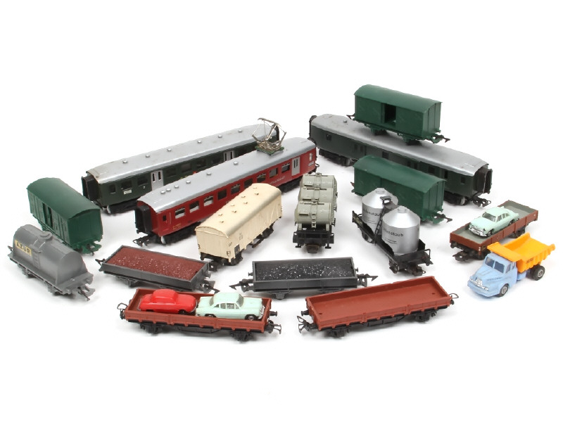 états de 'A' à 'C' - comprend notamment : voitures-voyageurs, wagons fourgon, porte-cuves, plateau & citerne - on y retrouve les marques : MÄRKLIN, JOUEF & NOREV (tracteur UNIC)