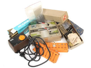 états de 'A' à 'D' - comprend notamment : rails droits, courbes, passage à niveaux, panneaux de signalisation & transformateur - on y retrouve notamment les marques : JOUEF & MÄRKLIN - possibilités de manques & parties cassées