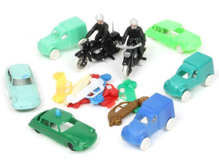 états de 'B' à 'C' - réalisation en plastique - miniatures reproduisant notamment les modèles : 2CV, DS & TRACTION - on y retrouve notamment les marques : MINIALUXE & ROLLS - petits manques