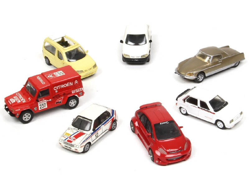 miniatures reproduisant les modèles : DS, VISA, BERLINGO & P4 - on y retrouve les marques : HAUTEVILLE, MINI RACING & PROVENCE MOULAGE