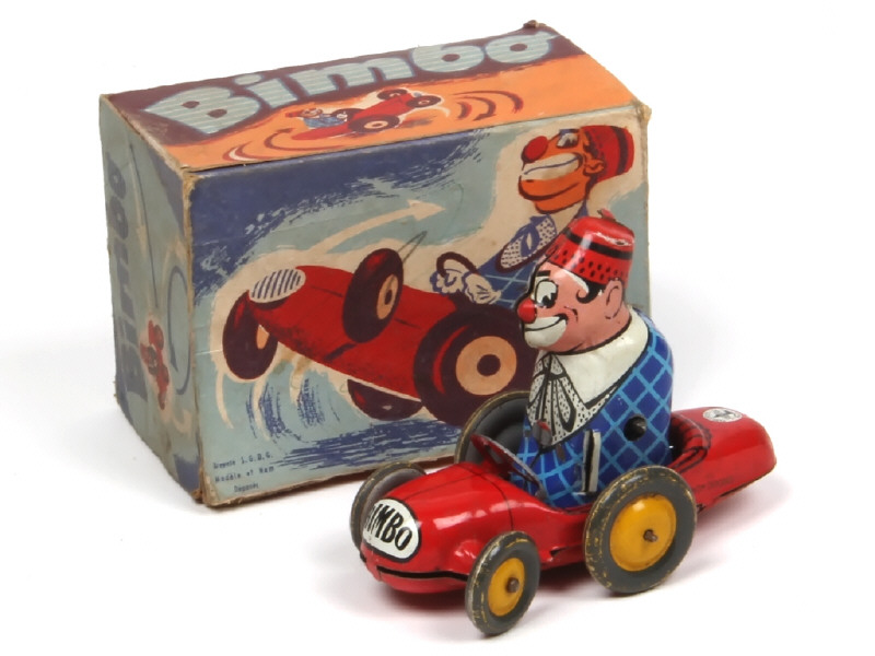 JOUSTRA (FRANCE) 1007 BIMBO en voiture en tôle lithographiée rouge, bleu & jaune