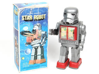hauteur : 29 cm - moteur à piles (à revoir, mauvaise fixation de la trappe) - fissures sur une porte ventrale