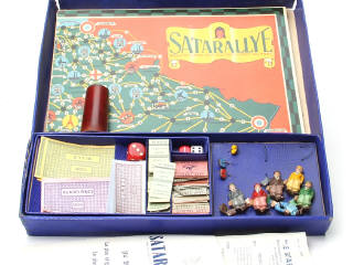 'le plus original, le plus imprévu des Rallyes !' - comprend de petits personnages en plomb creux avec des valises (éclats), un plateau de jeu, des dés & des cartes - avec notices - possibilité de petits manques