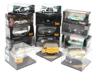 miniatures reproduisant notamment les modèles : ALFA ROMEO, RENAULT, VW, JAGUAR, MORRIS, PEUGEOT, FORD & ASTON MARTIN - on y retrouve notamment les marques : VITESSE, QUARTZO, IXO & DETAILCARS