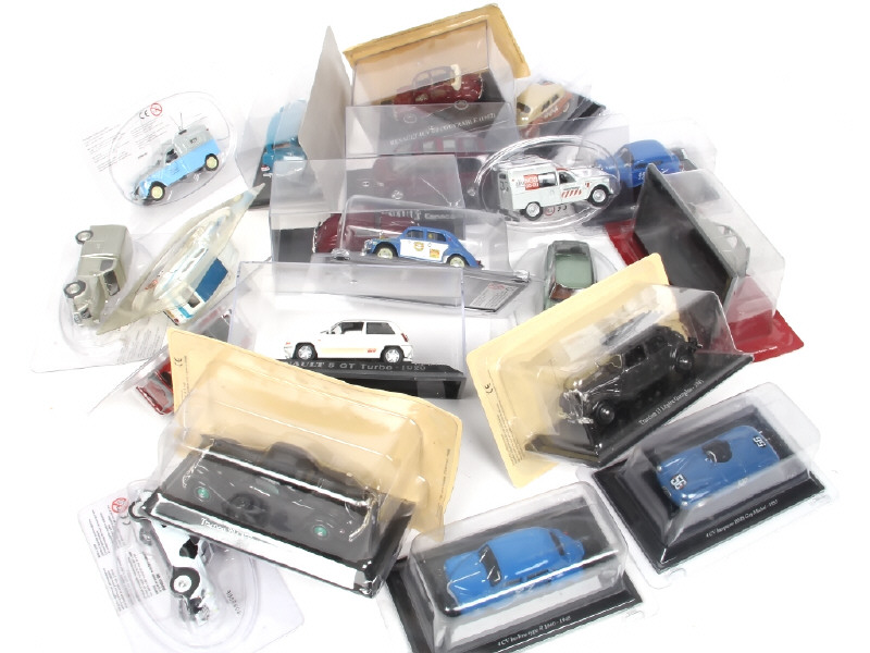 modèles vendus en kiosque - miniatures reproduisant les modèles : RENAULT & CITROËN - possibilité de petits accessoires manquants & cassés - quelques boîtes ouvertes & d'autres en état 'c'