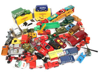 différentes échelles - états de 'A' à 'E' - on y retrouve notamment les marques : CORGI TOYS, NOREV & MAJORETTE - avec manques & parties cassées