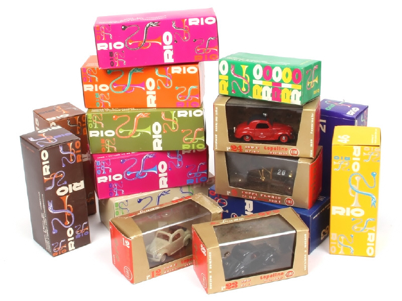miniatures reproduisant notamment les modèles : FIAT, RENAULT, MERCEDES, LEYAT, DUESENBERG & ISOTTA FRACHINI - boîtes encrassées - possibilité de petits accessoires manquants