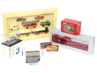 échelle 1/87ème - miniatures reproduisant notamment les modèles : FERRARI, MERCEDES, BMW & TRABAN - on y retrouve notamment les marques : WIKING (un coffret pormotionnel MERCEDES) & HERPA