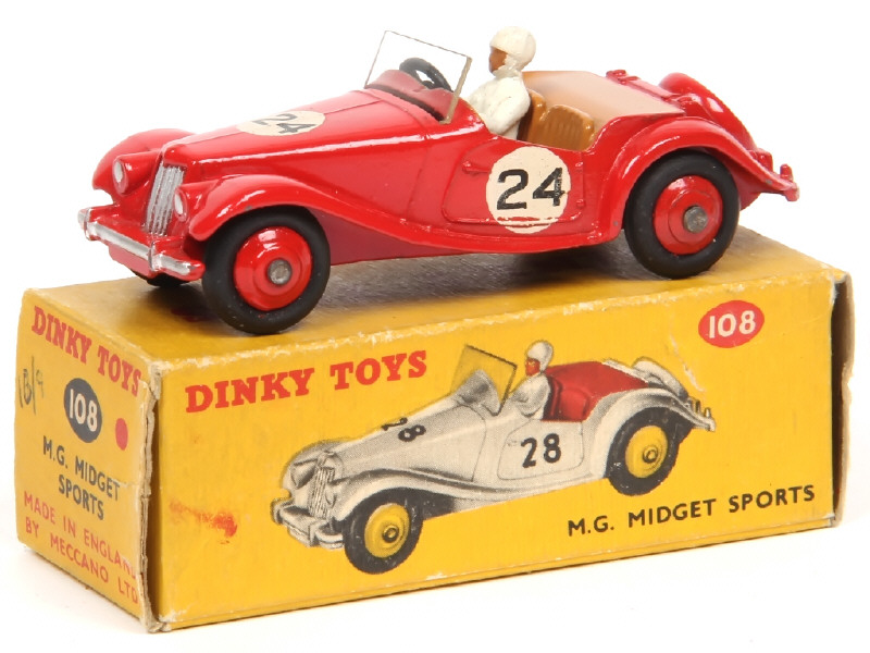 DINKY TOYS (GB) 108 MG MIDGET Sports rouge, intérieur brun, jantes rouges