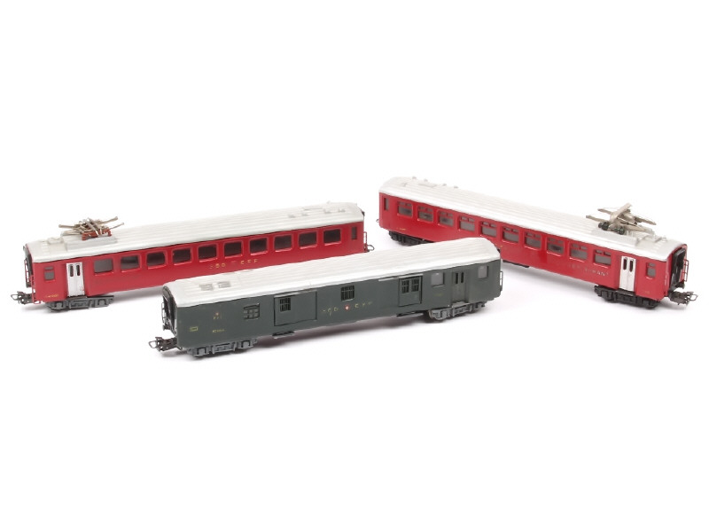 comprend : voiture-restaurant (2 exemplaires) & wagon-fourgon à bagages - quelques frottements plus ou moins importants par endroits - carrosseries légèrement encrassées