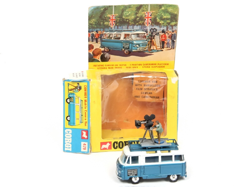 CORGI TOYS (GB) 479 COMMER Bus de reportage avec caméra bleu métal & blanc