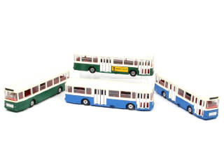 NOREV (FRANCE) Ensemble de 4 autobus SAVIEM SC 10U bleu & vert