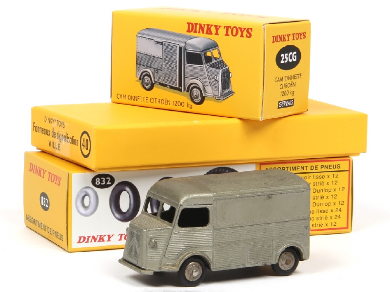 comprend les références : 25 CG 'GERVAIS', 40, 832 - on y joint un CITROEN 1200 KG de la marque DINKY TOYS FRANCE en état 'B' (carrosserie encrassée avec quelques petites retouches & pneus plus ou moins coupés)