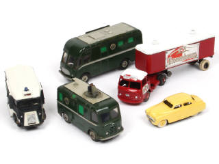 états de 'D' à 'R' - comprend : CITROEN car de police, SIMCA 9 ARONDE, Camion-régie & d'enregistrement 'B.B.C TELEVISION' - on y joint un tracteur de la marque C.I.J (en état 'R' avec transformations) & une remorque de la marque JRD (en état 'R') - avec manques & petits éléments cassés