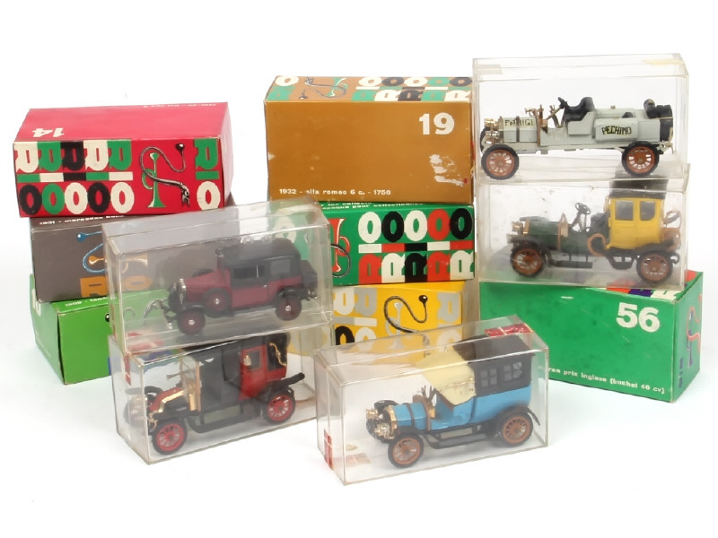 états de 'A+' à 'B' - miniatures reproduisant notamment les modèles : FIAT, LANDAULET BIANCHI, ALFA ROMEO, RENAULT & MERCEDES-BENZ - quelques accrocs & petites déchirures sur certaines boites