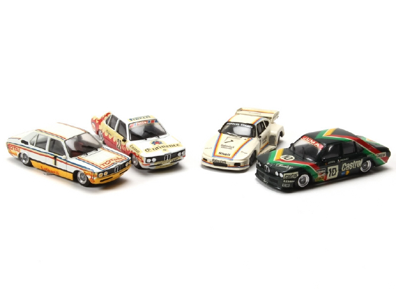 miniatures reproduisant les modèles : BMW (3 exemplaires différents) & PORSCHE - on y retrouve notamment la marque FDS - quelques accessoires décollés, cassés & d'autres manquants