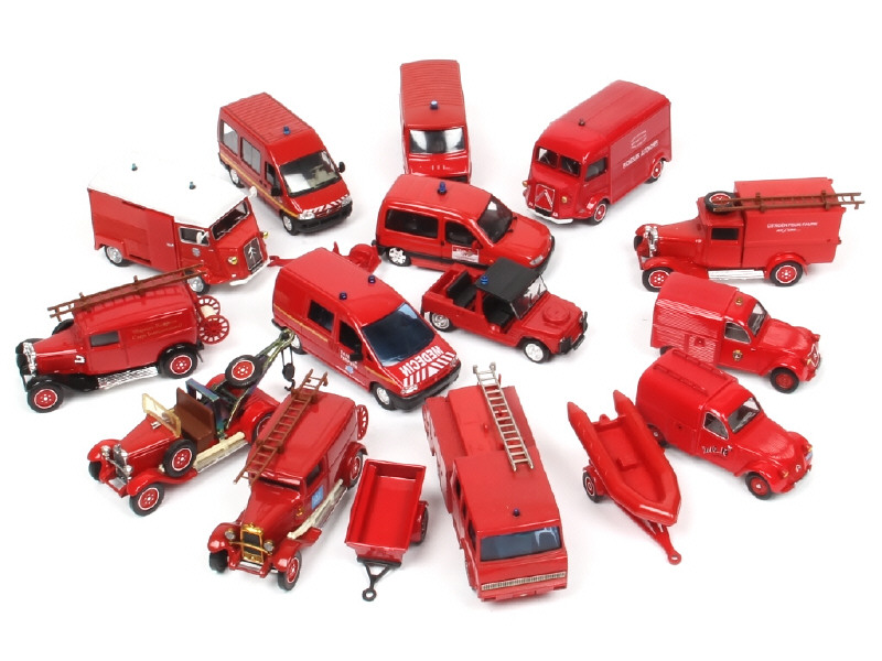 SOLIDO (FRANCE) Ensemble de 14 véhicules de pompiers & 2 remorques rouge