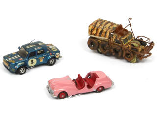 comprend : LAND ROVER de safari (transformation sur base CORGI TOYS), PEUGEOT 203 cabriolet (sur base DINKY TOYS FRANCE) & RENAULT 8 de compétition (sur base DINKY TOYS FRANCE)