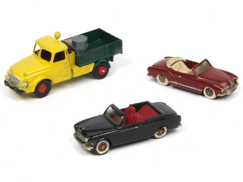 transformation sur base DINKY TOYS FRANCE - comprend : WILLEME Plateau à ridelles, VOLKSWAGEN KARMAN cabriolet & PEUGEOT 403 cabriolet