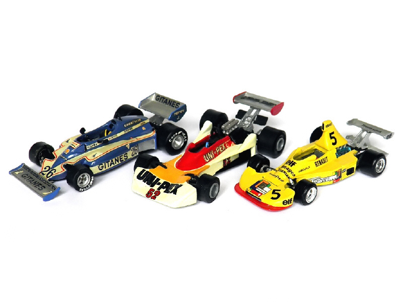 miniatures reproduisant les modèles : RENAULT ELF, LIGIER JS7 & TYRREL 007 FORD - on y retrouve les marques : MINI RACING, X-TENARIV & divers