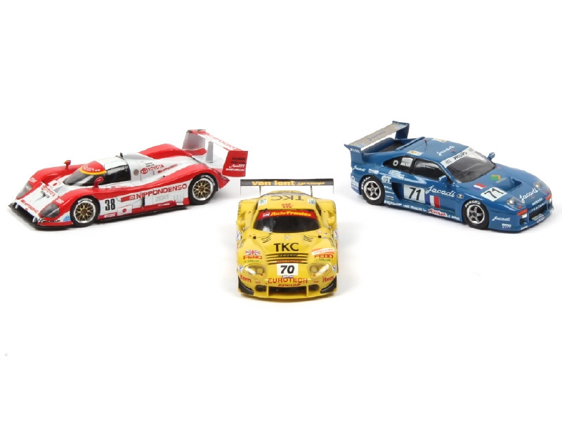 comprend les modèles : MARCOS 600 (1997), VENTURI (1993) & TOYOTA TS 010 (1993 - état 'B' avec traces de colle) - quelques petits accessoires manquants & parties restaurées