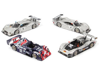 comprend les modèles : MERCEDES CLR (1999 - 2 exemplaires différents), NISSAN R391 (1999) & AUDI R8R (1999) - une fixation d'aileron défficiente