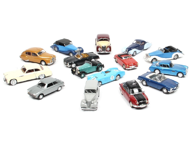 comprend notamment les modèles : DELAHAYE, PEUGEOT, TALBOT, FACEL VEGA, PANHARD, DODGE & SIMCA - on y retrouve notamment les marques : SOLIDO, BBURAGO & NOREV - avec petits manques & parties cassées sur certains modèles