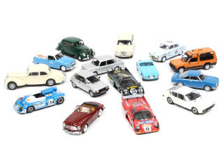 miniatures reproduisant notamment les modèles : SIMCA, RONDEAU, MATFORD & TALBOT - on y retrouve notamment la marque : TOP MODEL - avec possibilité de petits manques & parties cassées sur certains modèles