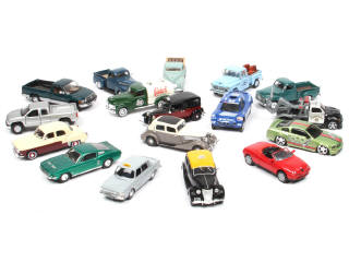 miniatures reproduisant notamment les modèles : ALFA ROMEO, FORD, RENAULT, DODGE, GMC & CHEVROLET - on y retrouve notamment les marques : ROAD SIGNATURE, SOLIDO, MATCHBOX, BBURAGO & NOREV - un exemplaire transformé - petits manques & parties cassées sur certains modèles