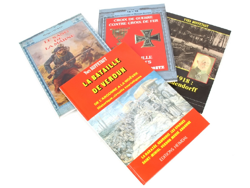 en langue française - comprend : 'LE SANG DE LA MARNE', 'ECHEC A LUDENDORFF', 'CROIX DE GUERRE CONTRE CROIX DE FER' & 'LA BATAILLE DE VERDUN'