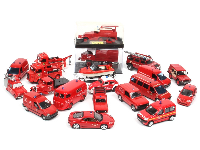 DIVERS Ensemble 24 véhicules de pompiers & un bateau sur remorque rouge