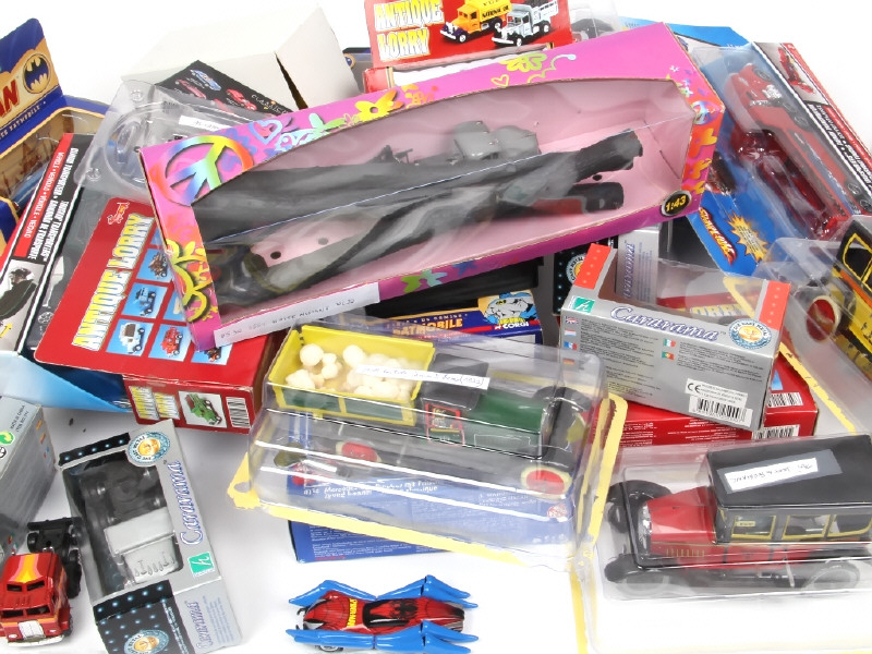 comprend notamment : BATMOBIL, camion à benne, de livraison, tacots en fer blanc, brasseur & transport de bois - on y retrouve notamment les marques : CORGI TOYS, HOTWHEELS & CARARAMA - possibilités de manques & parties cassées