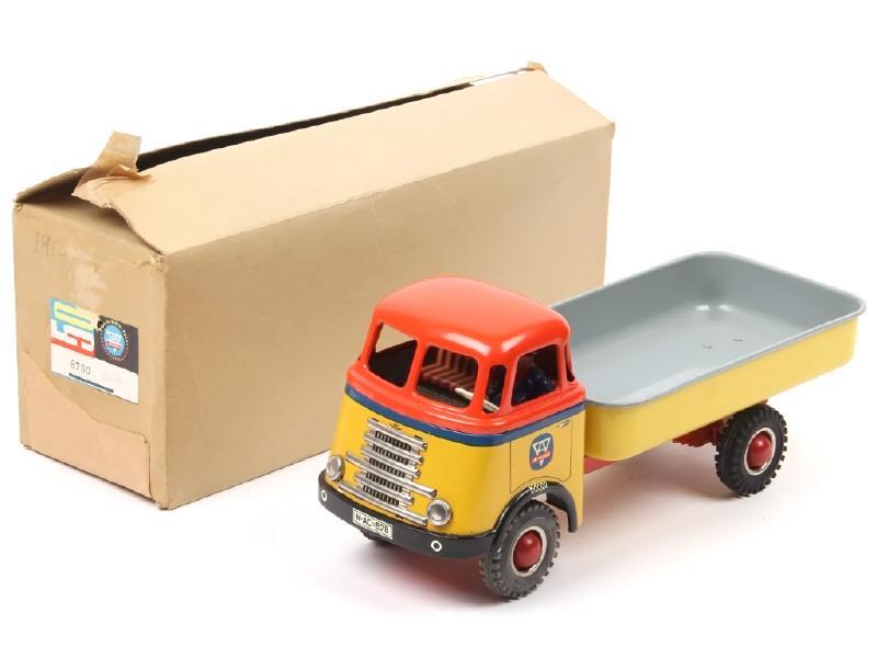 longueur : 29 cm - avec moteur à friction (fonctionne) - quelques petits frottements sur les éléments de châssis - pneus plus ou moins séchés & blanchis - quelques petites déchirures sur la boite & inscriptions au marqueur