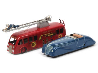 longueur 27 cm - version avec échelle simple & pompier - moteur à clef & mécanisme de montée du personnage sur l'échelle (fonctionnent poussivement)